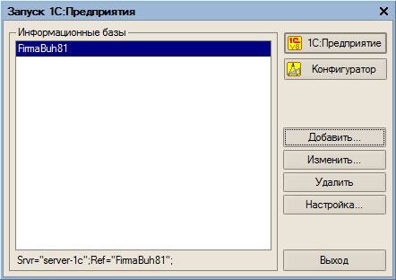 Запустим эту службу. Подключим пробную БД FirmaBuh81:
