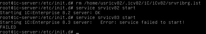 Для успешной работы двух платформ 1С:Предприятие на одном сервере необходимо изменить рабочие порты для одной из них. В среде Linux это делается через скрипты запуска в /etc/init.d, необходимые файлы называются srv1cv82 и srv1cv83 соответственно. В нашем случае оставим платформу 8.2 работать со стандартными настройками, а для платформы 8.3 внесем изменения.