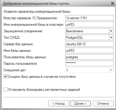 После этих нехитрых действий мы получим две работающие платформы 1С:Предприятие на Linux-сервере. Для пользователей платформы 8.2 никаких изменений не произойдет, а для платформы 8.3 потребуется дополнительно указывать порт (1741), через двоеточие после имени сервера: