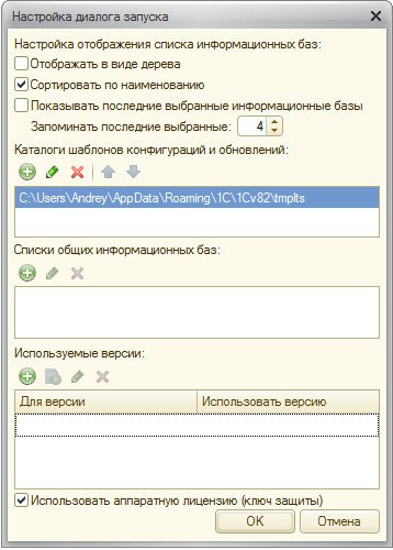 Данный пункт появился в версии 8.2 и дает возможность использовать различные версии платформы для различных информационных баз. Эту возможность трудно переоценить.