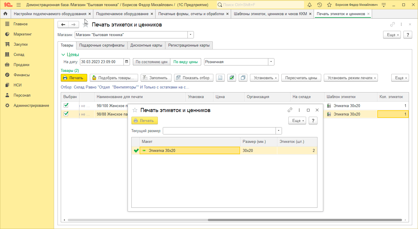 Эмулятор принтера этикеток тоже никак себя не проявляет, в момент "печати" промелькнуло окно, но никакой файл в лог записан не был. Но это и не нужно, основная цель этого эмулятора - разблокировать в программе возможности работы с принтерами этикеток, без подключенного экземпляра оборудования они будут недоступны.