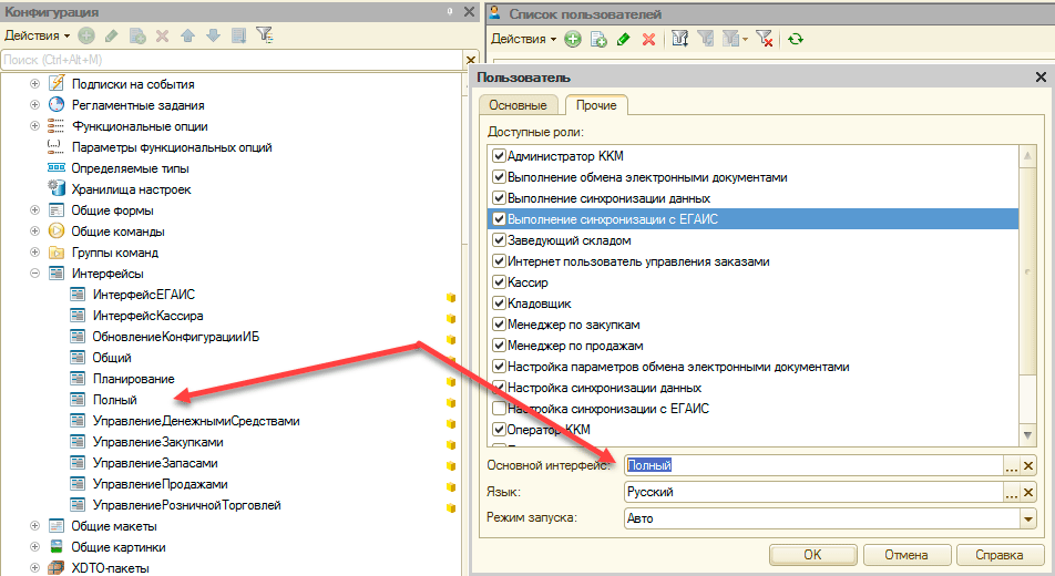 Создав профиль назначаем группу доступа нужным пользователям и запускаем программу под одним из них. В зависимости от назначенных прав вы увидите автоматически сформированный интерфейс.