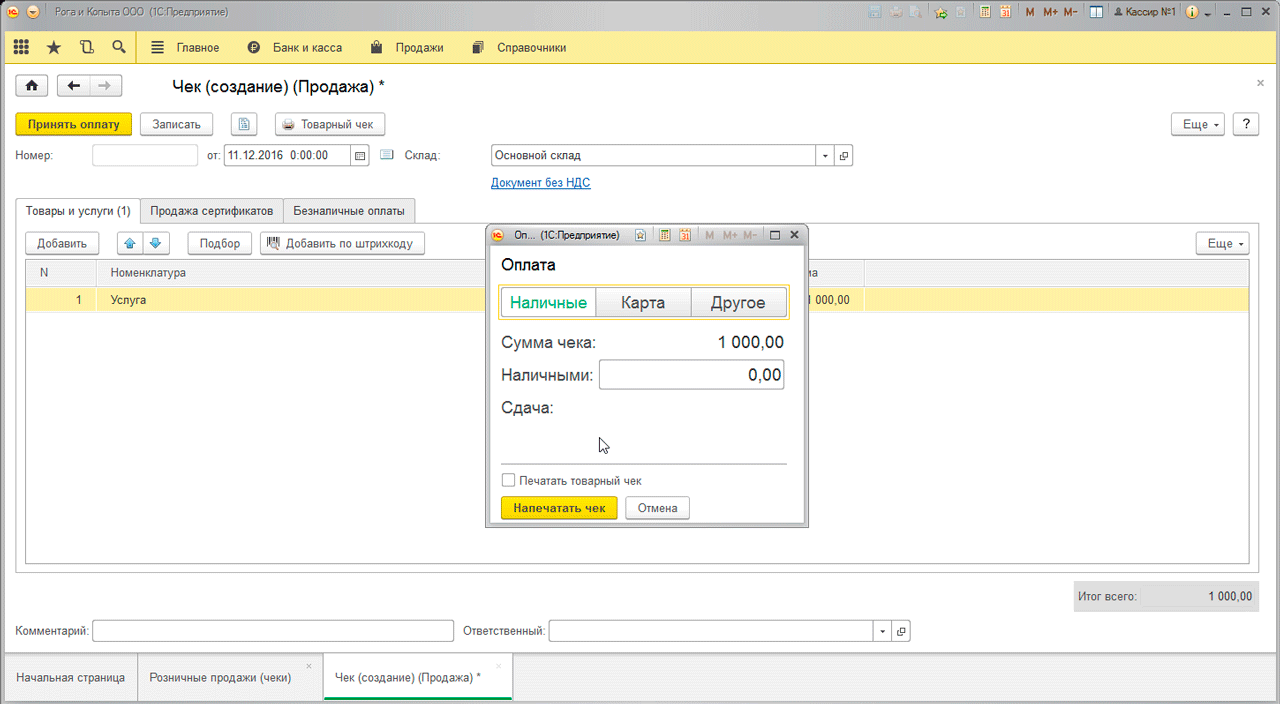 Чтобы не быть голословными разберем практический пример. В рамках подготовки к переходу на онлайн-кассы было решено автоматизировать кассовые места небольшой сети стоматологических клиник. Основу автоматизации клиник составляло отраслевое ПО не на базе 1С и не предусматривающее возможность подключения фискального регистратора, поэтому было принято решение для автоматизации кассовых мест использовать конфигурацию Бухгалтерия предприятия 3.0, которая содержит все необходимые функции.