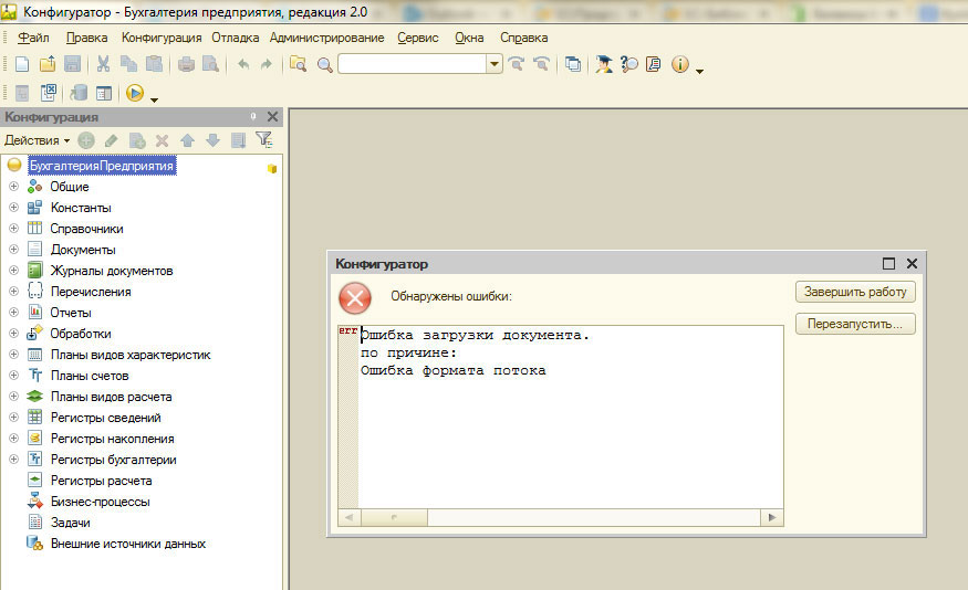 1С:Предприятие 8. Ошибка формата потока при обновлении