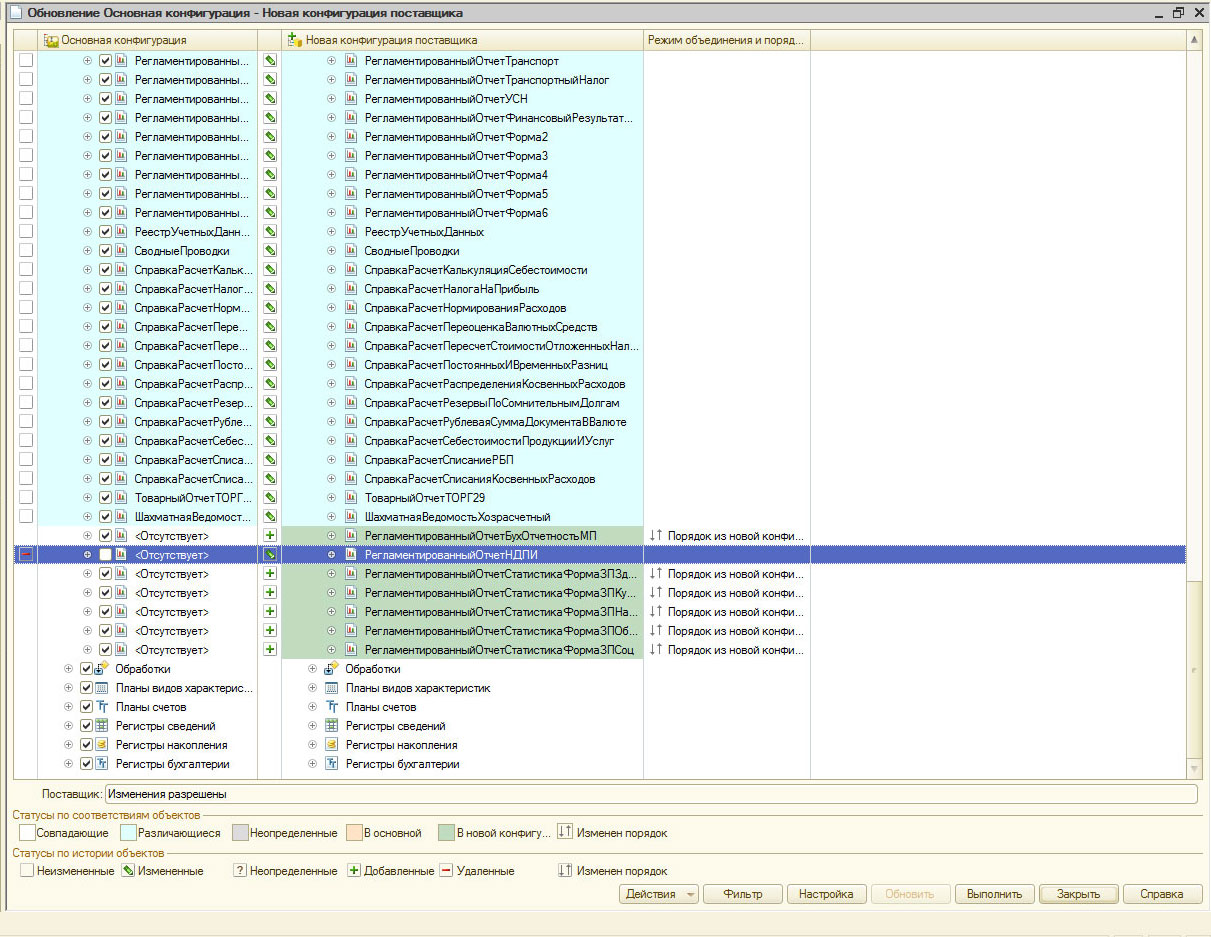 После чего можно приступать к сравнению и объединению конфигурации или обновлению, проконтролировав замену поврежденного объекта исправным из конфигурации поставщика.