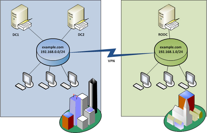 Проходит время, ваша организация растет и у нее появляется филиал в другом конце города и возникает необходимость включить их сеть в общую инфраструктуру предприятия. На первый взгляд ничего сложного, вы настраиваете канал связи между офисами и размещаете в нем дополнительный контроллер. Все бы хорошо, но есть одно но. Данный сервер вы контролировать не можете, а следовательно не исключен несанкционированный доступ к нему, да и местный админ вызывает у вас сомнения в его квалификации. Как быть в такой ситуации? Для этих целей специально существует особый тип контроллера: контроллер домена доступный только на чтение (RODC), данная функция доступна в режимах работы домена начиная с Windows Server 2008 и выше.