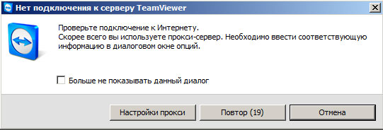 Однако это еще не все, через некоторое время, убедившись в безуспешности попыток подключения, TeamViewer предложит использовать прокси-сервер.