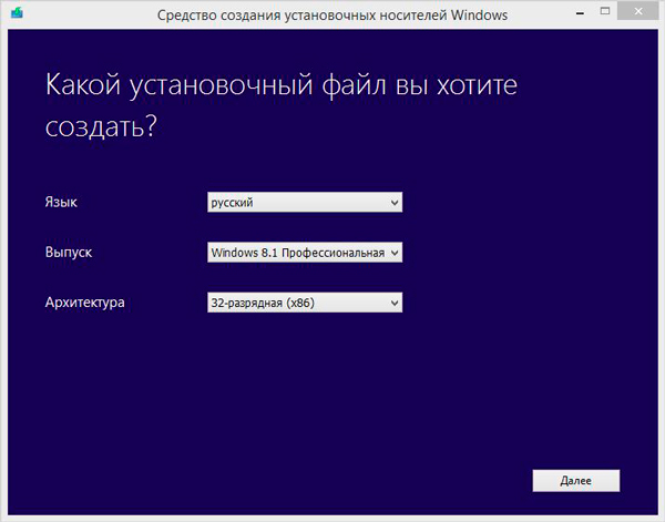 Работа с утилитой предельно проста. Сначала выбираем язык, версию и разрядность дистрибутива: