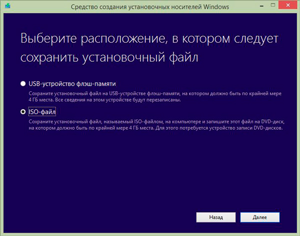 Затем выбираем, каким образом мы хотим его сохранить: в виде установочной флешки или ISO-образа.