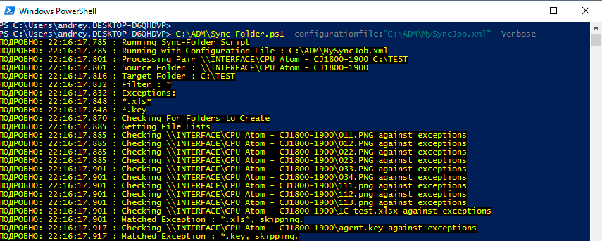 1C:\ADM\Sync-Folder.ps1 -configurationfile:"C:\ADM\MySyncJob.xml" -Verbose