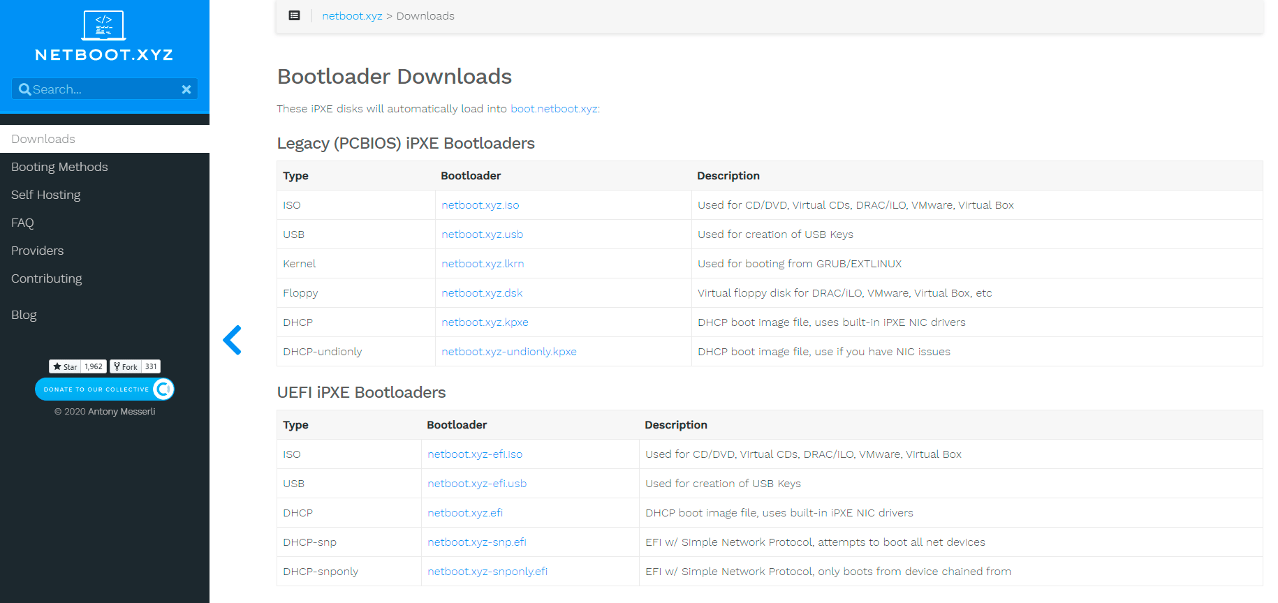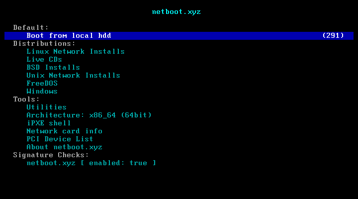 Что представляет из себя netboot.xyz? Это открытый проект, который позволяет выполнить сетевую загрузку практически любого дистрибутива с использованием iPXE - открытой реализации ПО для загрузки по сети. Все что вам нужно для начала работы проектом - это загрузить с официального сайта загрузочный образ размером около 1МБ.