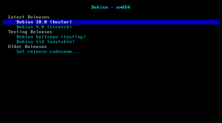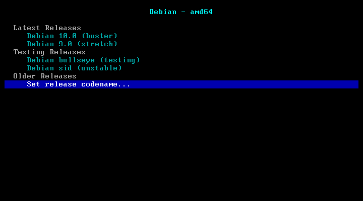 Но это еще не все, как быть, если нам требуется что-то нестандартное, допустим достаточно старый дистрибутив. Не вопрос, переходим в пункт Older Releases - Set release codename...