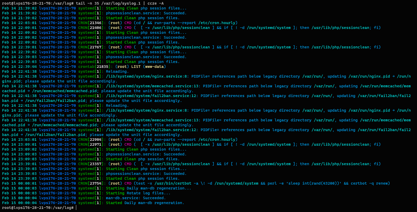1cat /var/log/syslog | ccze -A