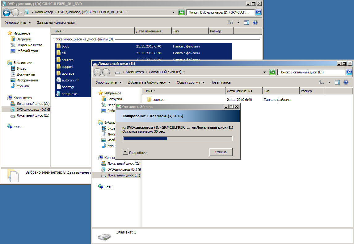 Следует помнить, что все OC семейства NT 6.x имеют одинаковый загрузчик, а это значит, что вы можете устанавливать с этого USB-диска любую ОС данного семейства, просто разместив установочные файлы на диске.
