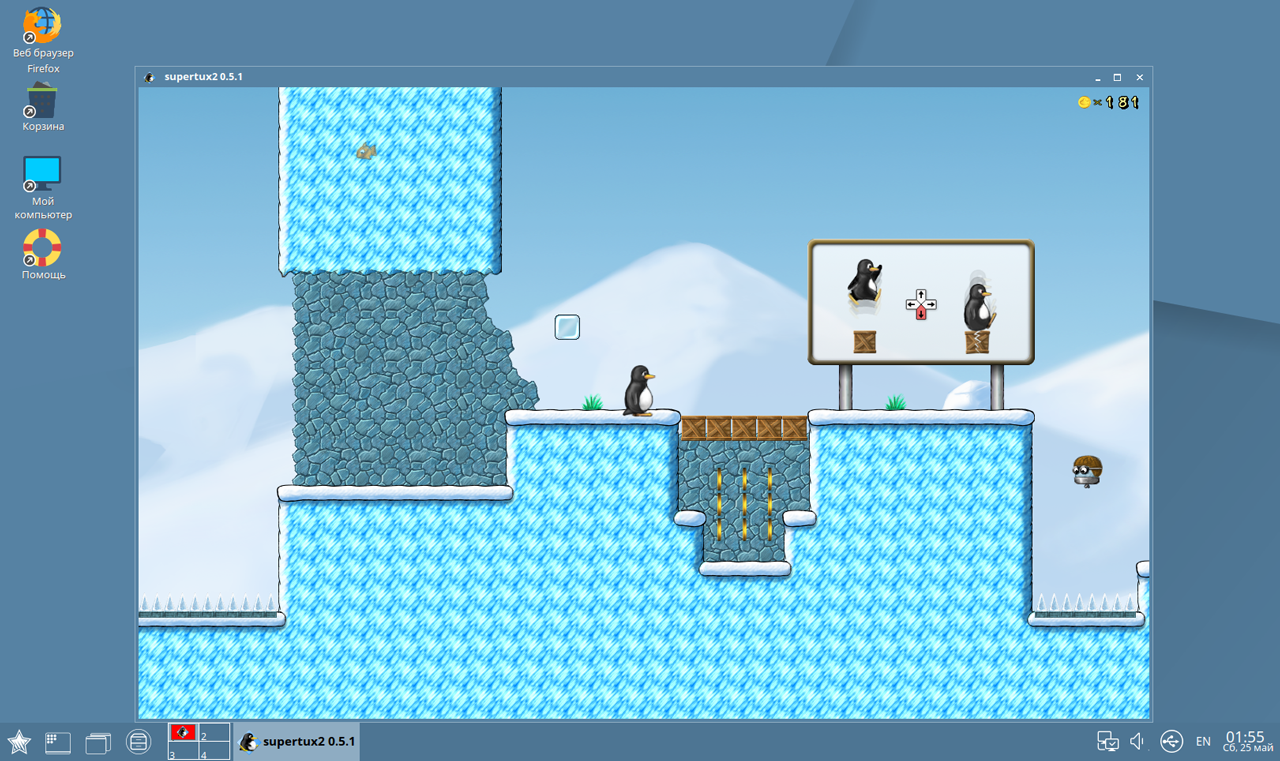 Игры и Linux до сих пор остаются в напряженных отношениях, так и здесь, в комплекте идет пару простейших игр типа сапера, древняя стратегия и неожиданно для себя мы обнаружили достаточно неплохой платформер, на обеде в офисе будет чем заняться.