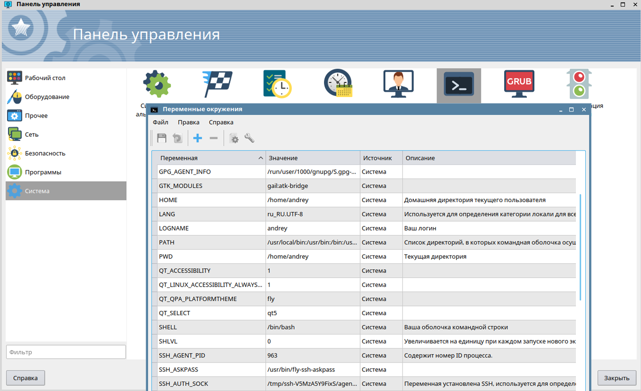 Панель управления также несет в себе сильное влияние Windows и в данном случае это хорошо, пользователь получает более-менее привычные инструменты, что позволяет решать многие задачи просто по аналогии.