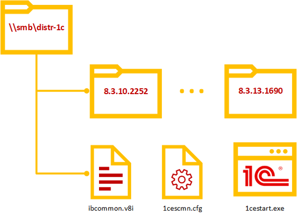 Вам потребуется только общая папка на файловом сервере, которая будет иметь следующую структуру: