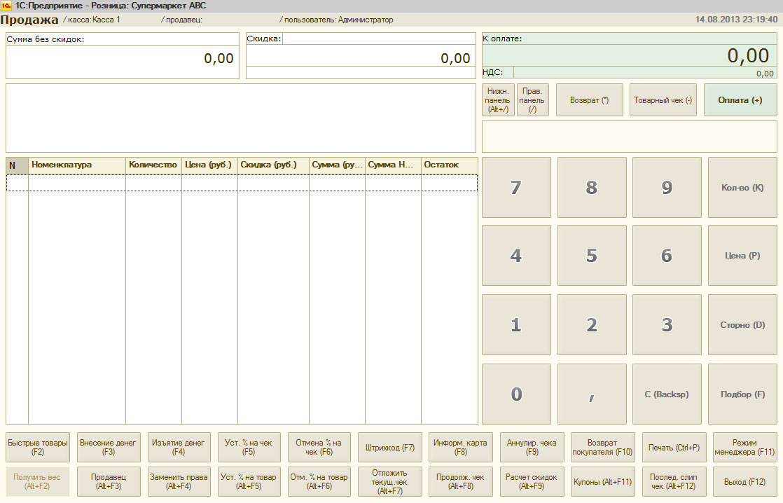 Как можно видеть интерфейс РМК значительно отличается от интерфейсов товароучетных программ и максимально оптимизирован для обслуживания продаж.