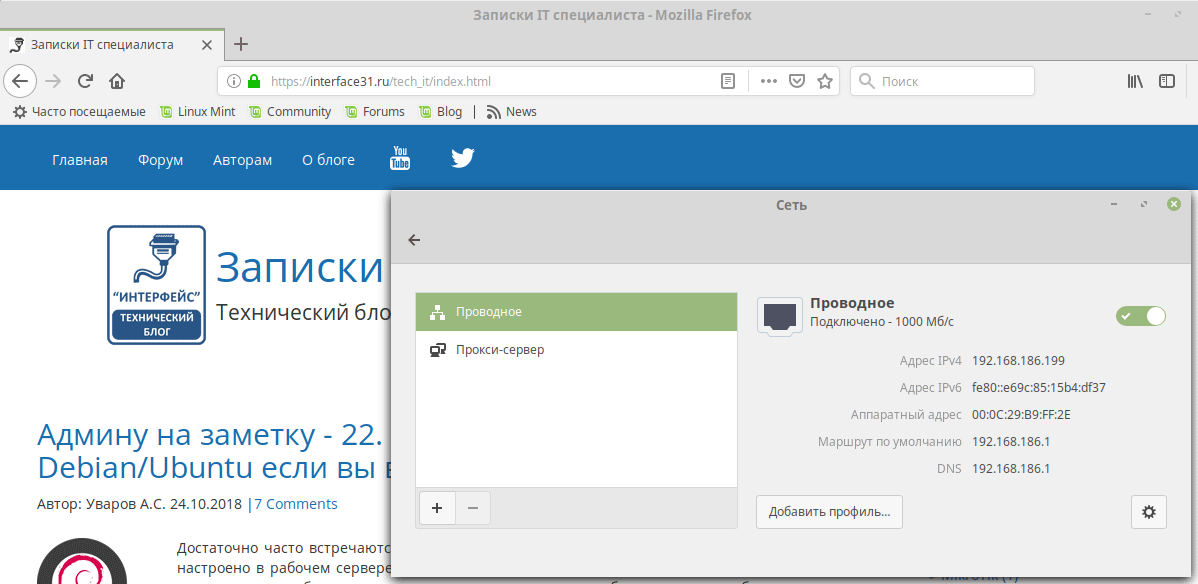 Теперь можем перейти на клиентский ПК и убедиться, что сетевые настройки получены и доступ в интернет есть.