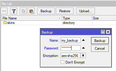 После того, как вы все настроили и убедились в работоспособности всех функций роутера следует сделать резервную копию настроек, это позволит в случае чего быстро развернуть готовую конфигурацию, что важно, если настройки вашего роутера сложнее чем базовые. Для этого перейдите в раздел Files и нажмите кнопку Backup, укажите имя резервной копии и пароль к файлу, после чего скачайте и сохраните резервную копию в надежном месте.