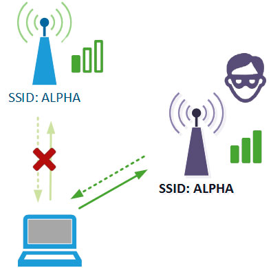Другая опасность подстерегает нас там, где принадлежность точки доступа вроде бы известна. Злоумышленник может использовать еще одно свойство сетей Wi-Fi - при наличии в сети нескольких точек доступа, автоматически переключаться на ту, у которой лучше сигнал.