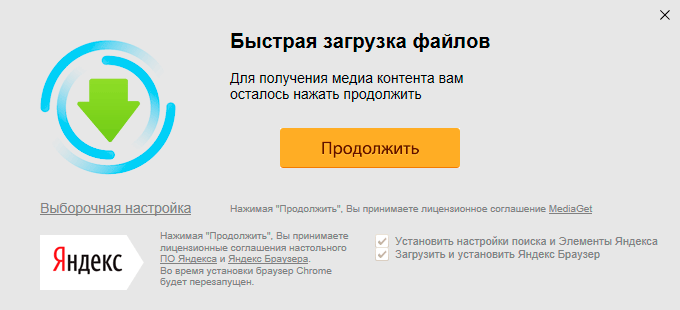 Но как быть с другой программой, обладающей гораздо худшей репутаций, также тянущей за собой всякий хлам и показывающей рекламу, печально известным MediaGet?