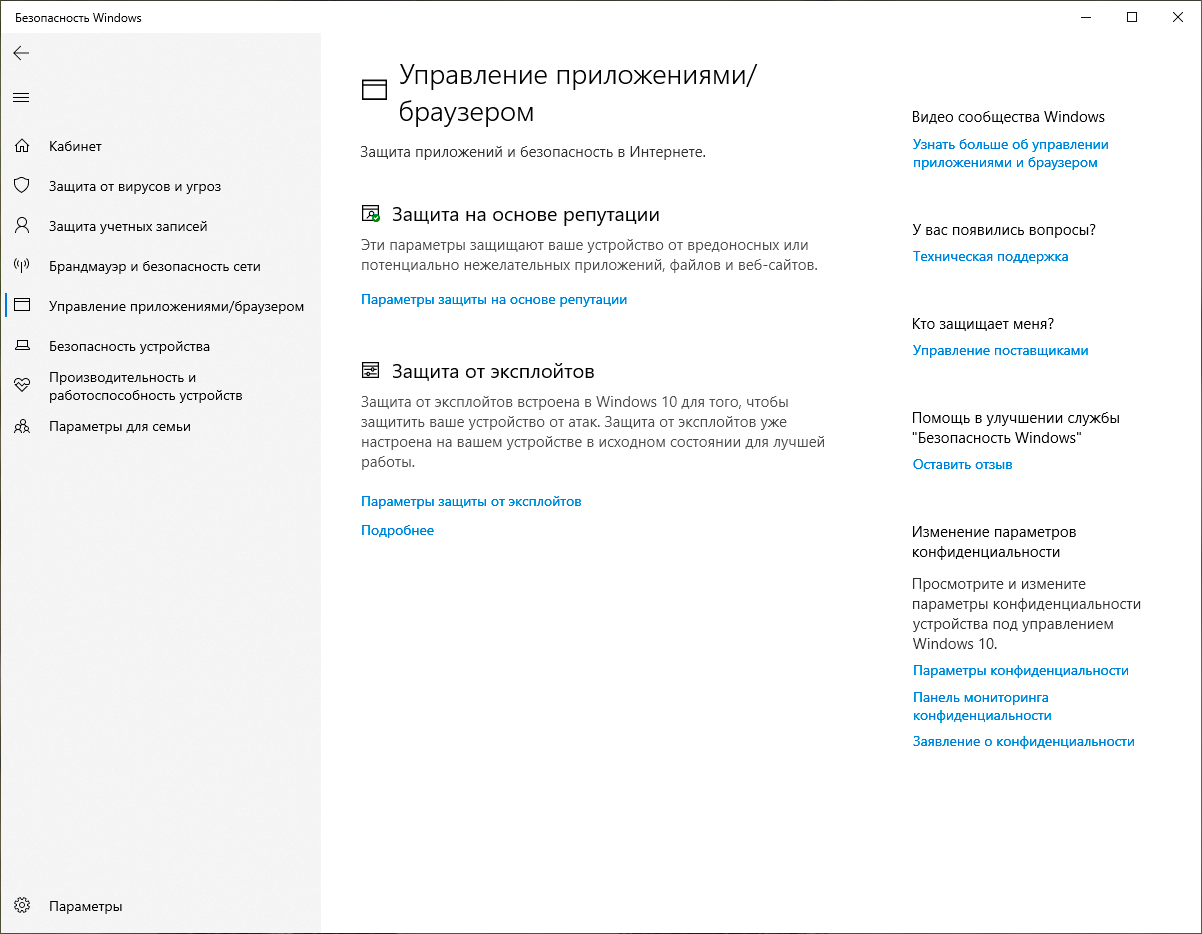 В графической оболочке откройте приложение Безопасность Windows и перейдите к Управление приложениями/браузером - Защита на основе репутации - Параметры защиты на основе репутации.