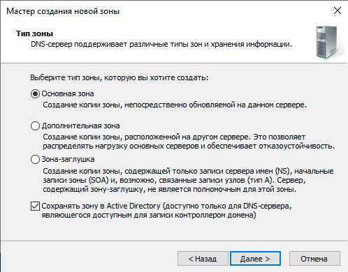 Область репликации - Для всех DNS-серверов, работающих на контроллерах домена в этом домене: