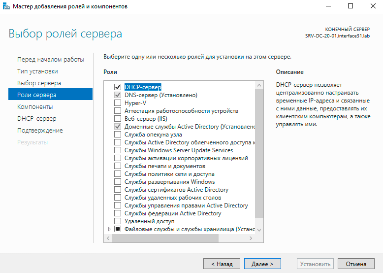 Снова откроем Диспетчер серверов и установим роль DHCP-сервер на каждом из контроллеров.