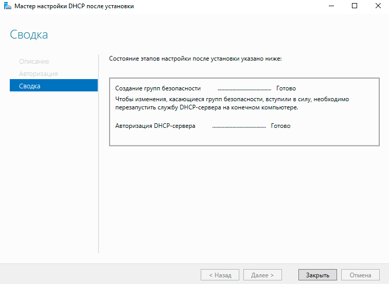 По окончании установки роли перейдите по ссылке Завершение настройки DHCP.