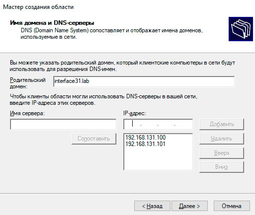 И DNS-сервера, в качестве которых указываем адреса наших контроллеров домена: