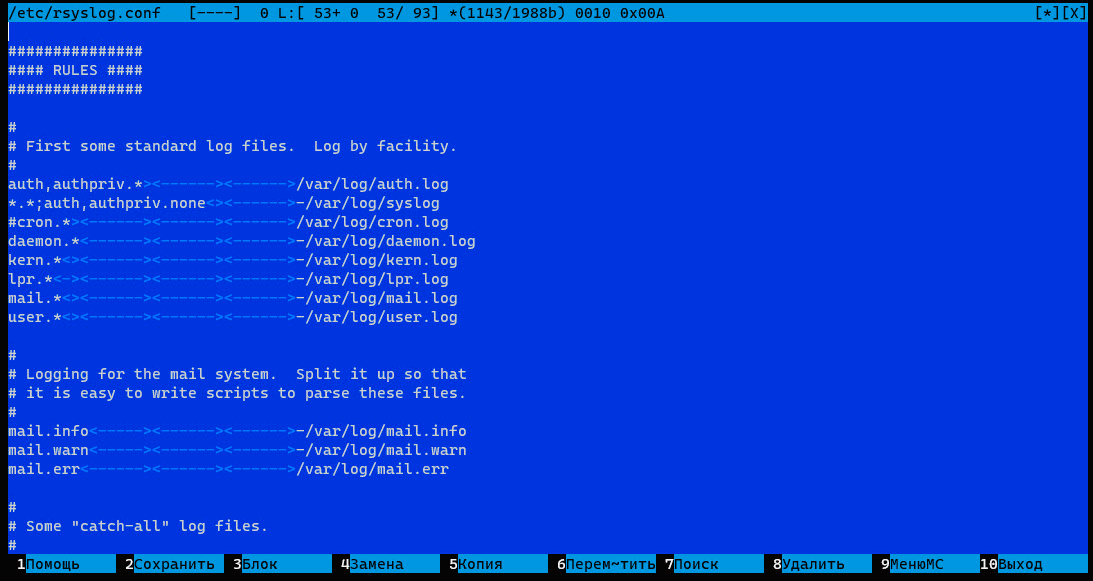 Что еще можно делать при помощи сервера логов The Dude? Можно собирать логи с Linux узлов. Для этого откройте файл /etc/rsyslog.conf и перейдите в секцию Rules. Ее содержимое достаточно понятно и в комментариях не нуждается.