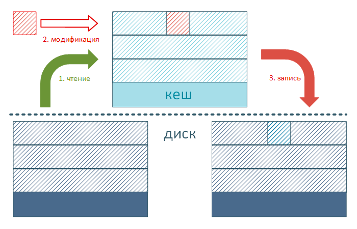 Внимательный читатель заметит, что это сильно похоже на работу SSD, который тоже не может изменить произвольную ячейку, так как для этого потребуется очистить целый блок. И будет абсолютно прав, как мы увидим ниже принципы работы SSD и SMR-дисков во многом схожи.