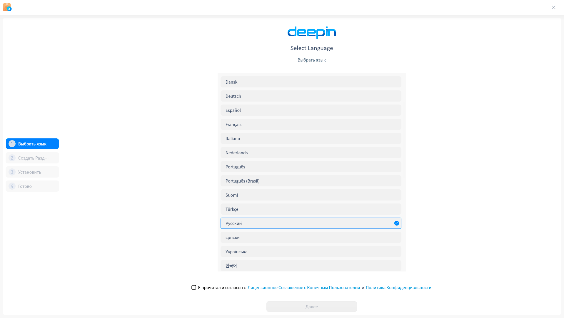 По-хорошему следовало добавить бы какой-нибудь предшествующий экран с текстом вроде "Вас приветствует Deepin! Для окончания установки выполните ряд несложных шагов". Как и во многих других дистрибутивах, добавить несколько раскладок в процессе установки нельзя, поэтому лучше выбрать заранее английскую раскладку, а русскую добавить потом, в системе. В целом весь процесс не должен вызвать никаких затруднений, все предельно просто и понятно.