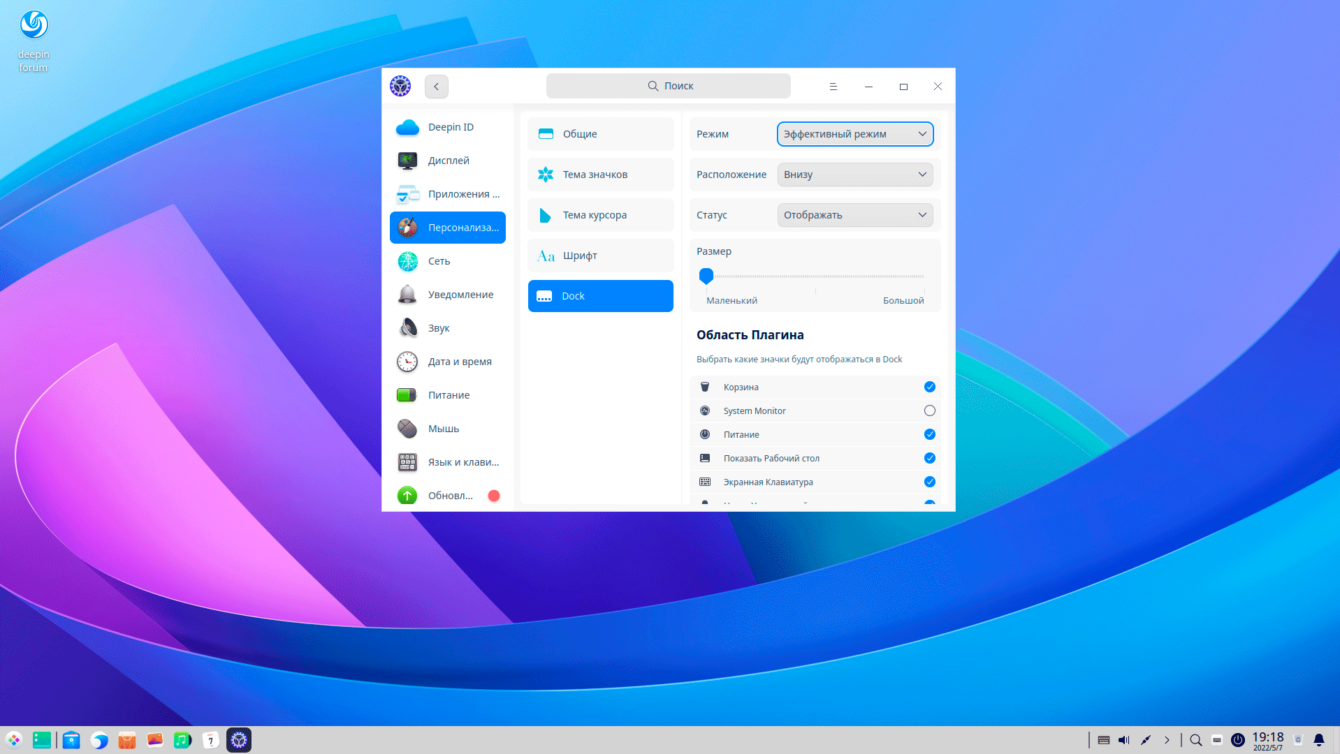 В общем на любой вкус. Тоже самое касается и дока, разработчики не стали мудрить и предложили два режима: Стильный, который вы видели на скриншотах выше и Эффективный, где док превращается в панель задач в стиле Windows.