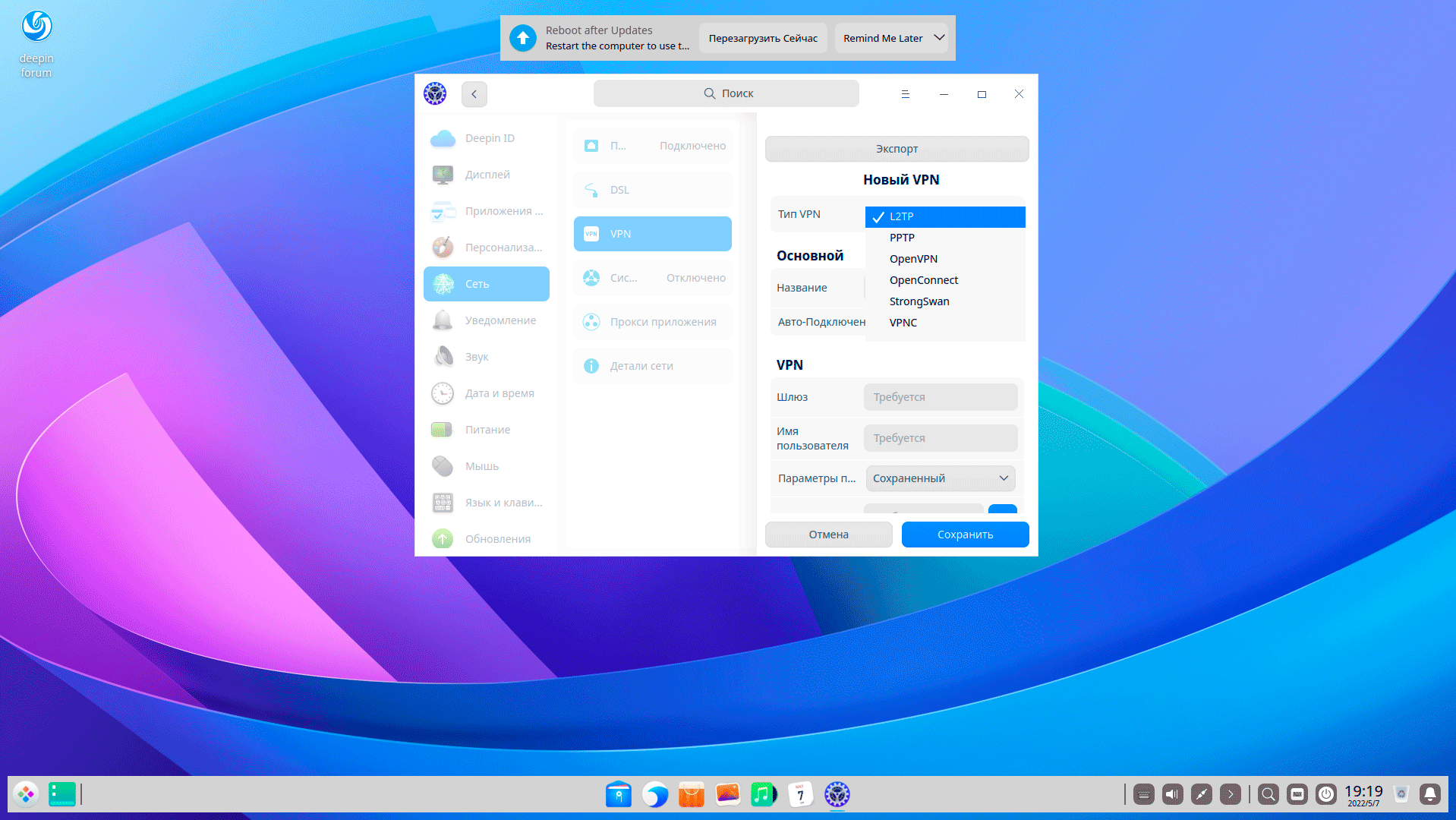Сам подход к настройкам также нацелен на упрощение использования системы, это не KDE, где от обилия опций растеряется даже подготовленный пользователь, здесь все по минимуму, но по теме. Хотите настроить VPN? Нет ничего сложного, выбираем протокол и заполняем поля ниже. Набор протоколов из коробки невелик, но закрывает все основные варианты. Разве что WireGuard нет, но на то могут быть и чисто внутренние китайские причины.