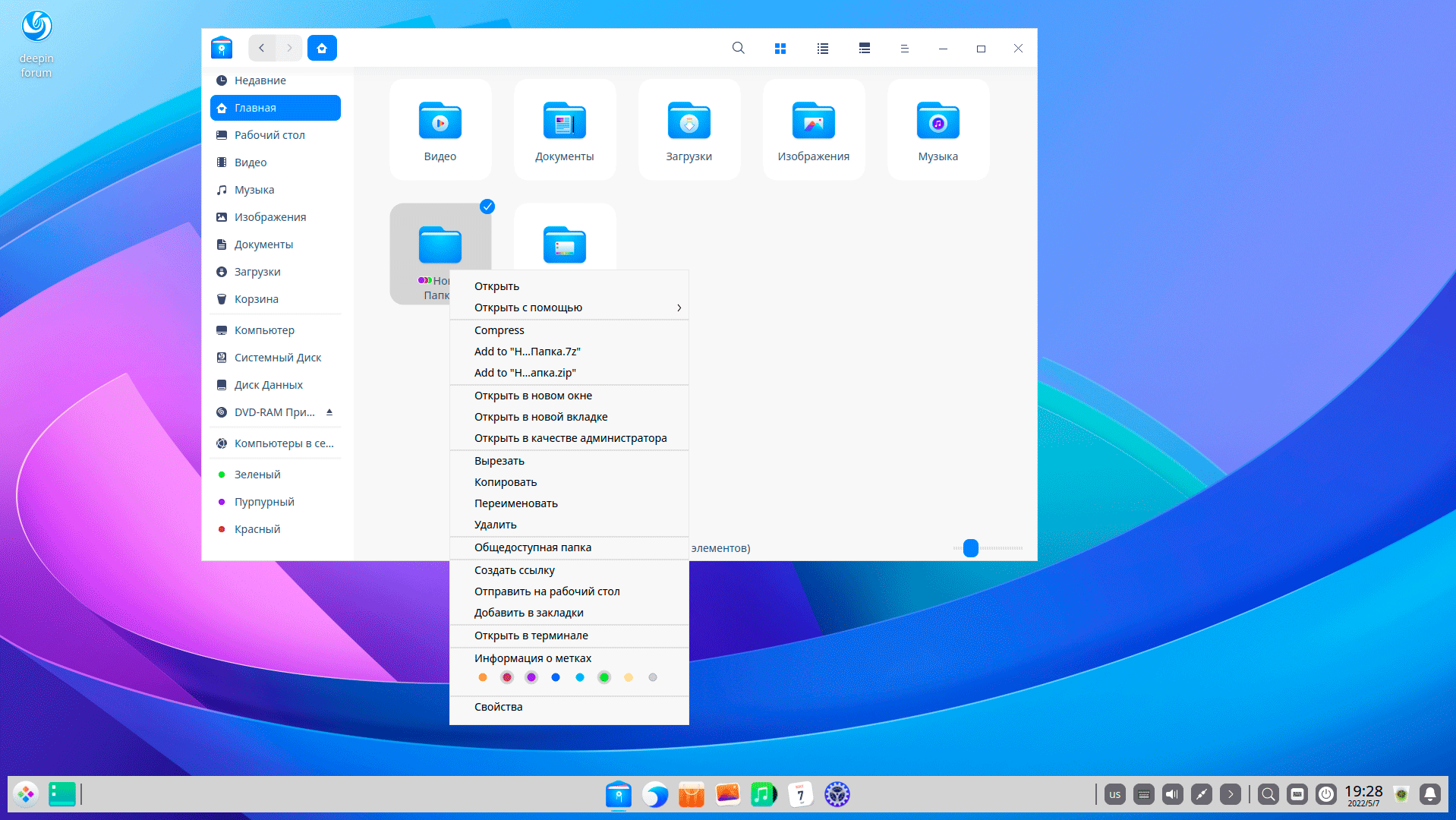 Если разобраться, то очень многие системные настройки от пользователя скрыли, зато добавили широкие возможности по кастомизации, многие идеи позаимствовали из других систем, но органично вписали это в Deepin, например, возможность ставить цветовые метки папкам и файлам, а потом осуществлять по ним быстрый отбор.