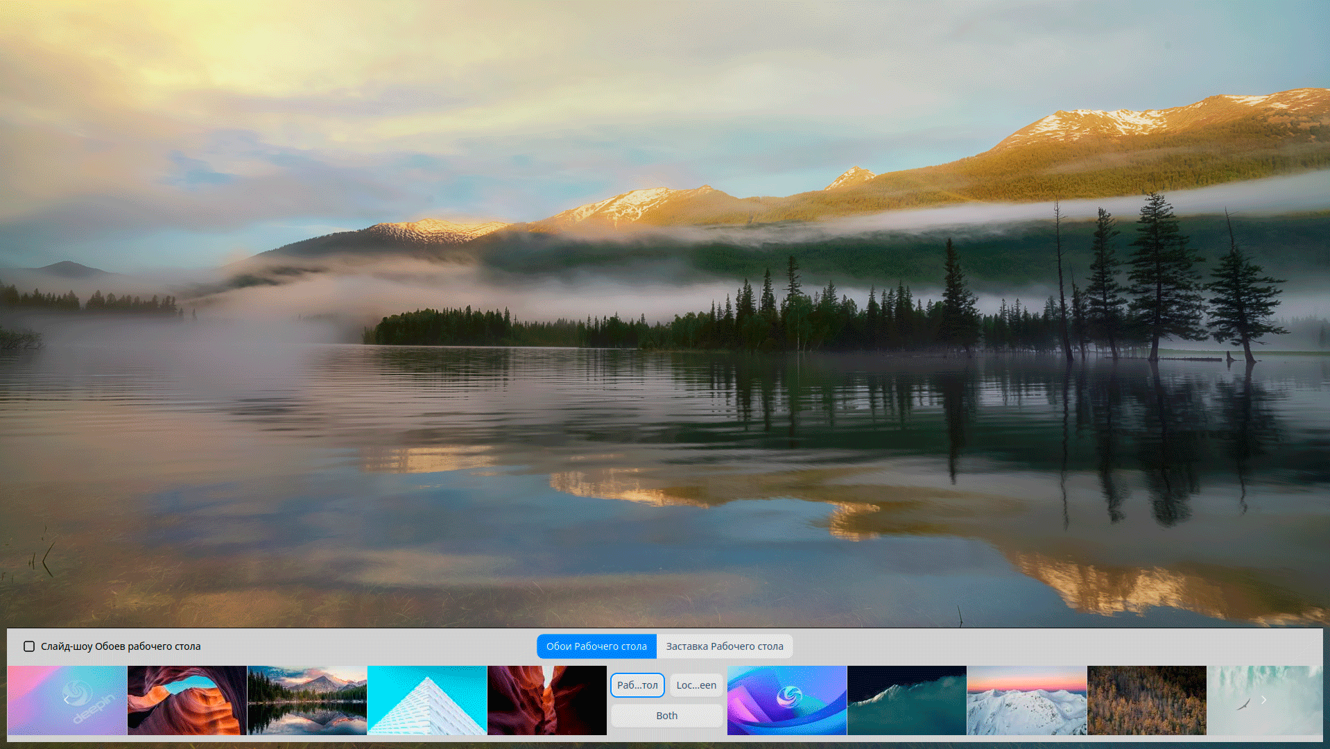 Выбор обоев показывает вам картинки во весь экран, после чего ее можно поставить на рабочий стол, можно на экран входа в систему или в оба места одновременно.