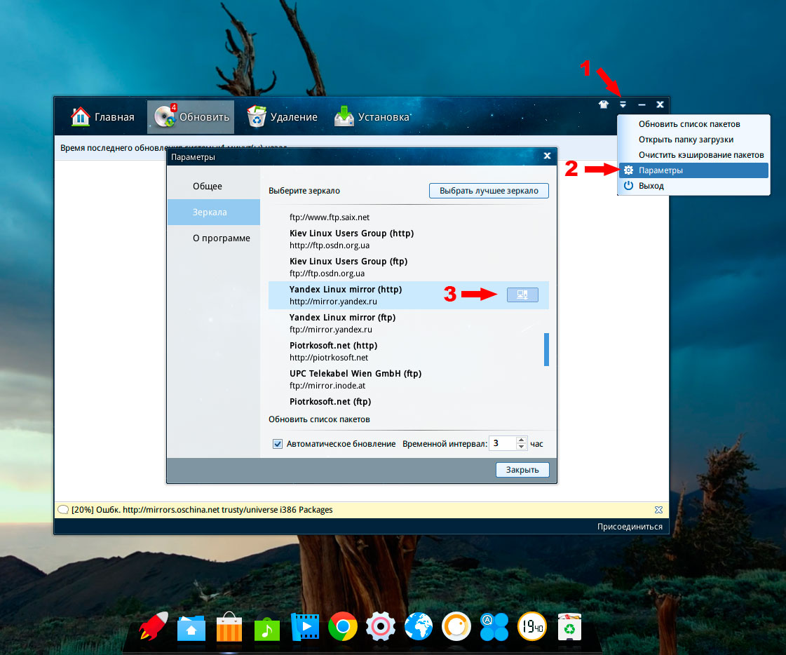 Для решения этой проблемы откройте Deepin Store и в Параметрах выберите наиболее подходящее зеркало. Нам понравилась работа с зеркалами Яндекса.