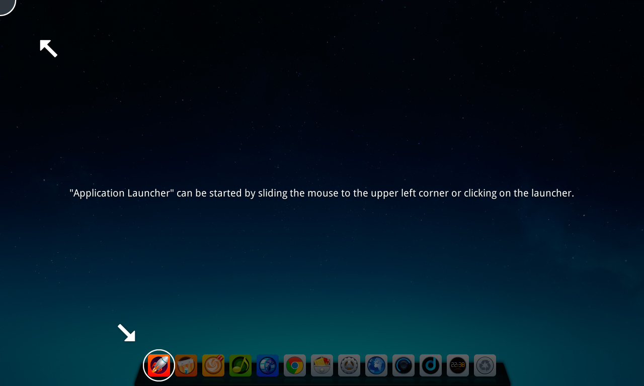 И наконец мы попадаем в рабочее окружение, оно представлено собственной разработкой - Deepin Desktop Environment (DDE), графической средой на базе HTML5, в основе которой лежит развитие Gnome3. Разработчики не бросают нас наедине с системой, нам предлагается пройти краткий курс, примерно также как это сделано в Windows 8. Возможно кому-то это покажется излишним, но мы считаем это однозначно хорошим начинанием, гораздо легче потратить минуту на усвоение основных принципов навигации, чем осваивать их полчаса методом тыка.