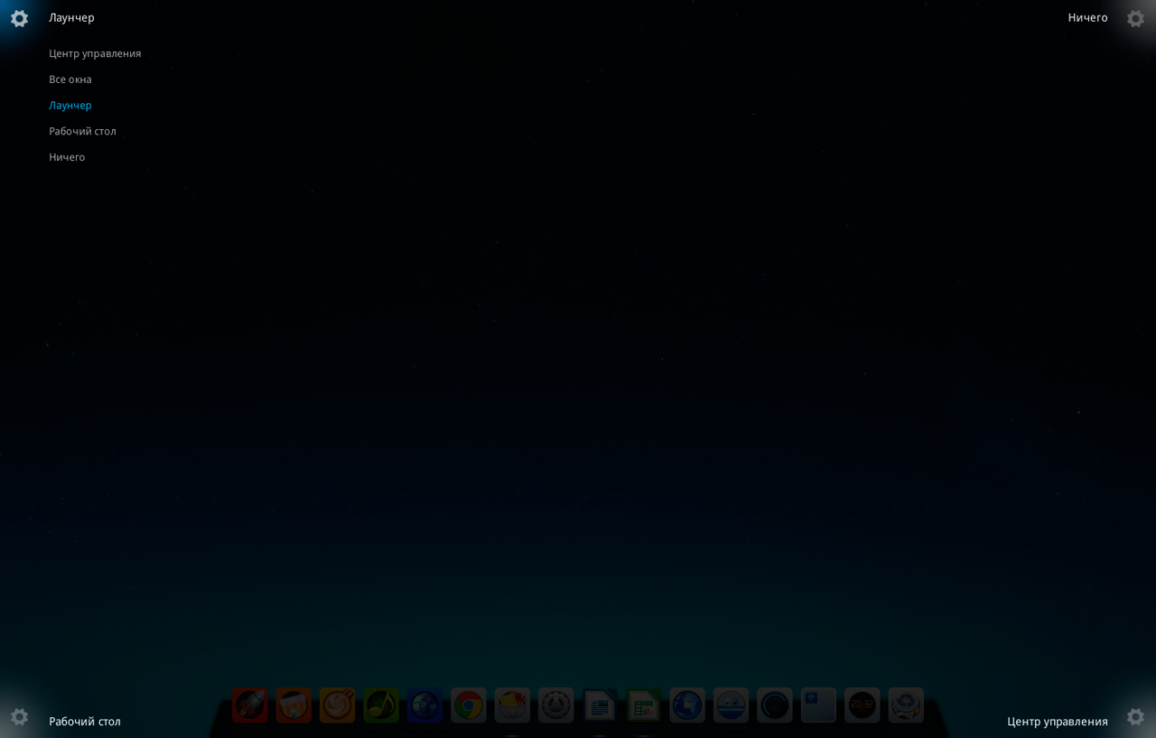 Основа управления - док внизу экрана, хорошо знакомый по MacOS и "горячие углы", представленные в Windows 8. На наш взгляд, разработчикам Microsoft следует внимательно ознакомиться с Deepin, чтобы понять, как надо было делать. Если в Windows "горячие углы" не вызывали ничего кроме глухого раздражения, то здесь это полноценный и удобный инструмент управления. По умолчанию они настроены следующим образом, но это можно очень быстро и просто изменить, например, мы назначили на правый верхний угол функцию Все окна.