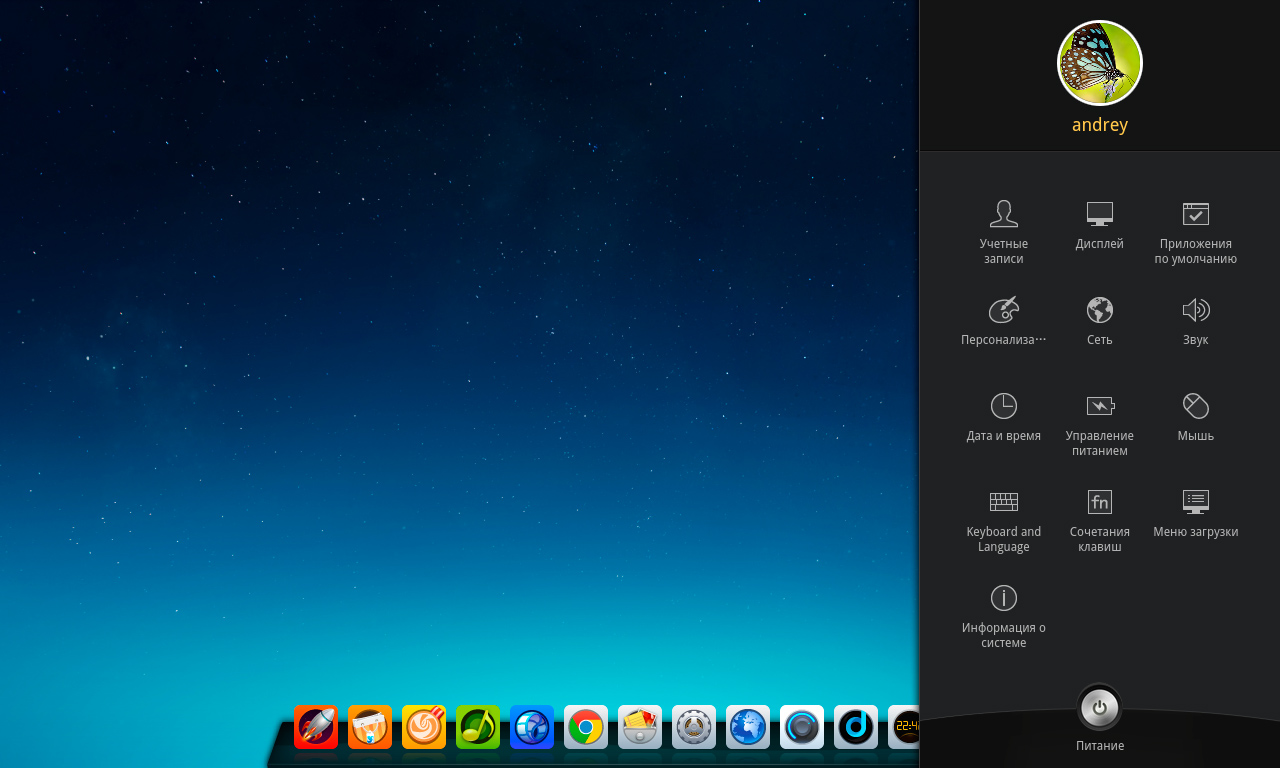 Вообще, у нас сложилось впечатление, что разработчики хорошо изучили современные рабочие среды, почерпнув оттуда все самое лучшее. В правом нижем углу находится меню управления системой, что было впервые предложено в Windows 8, но если там это меню смотрится в режиме рабочего стола чужеродно и местами откровенно неудобно, то в Deepin это действительно оригинальное и удобное решение.