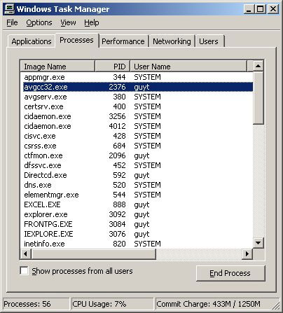 Диспетчер задач Windows XP (с новыми вкладками Сеть и Пользователи)