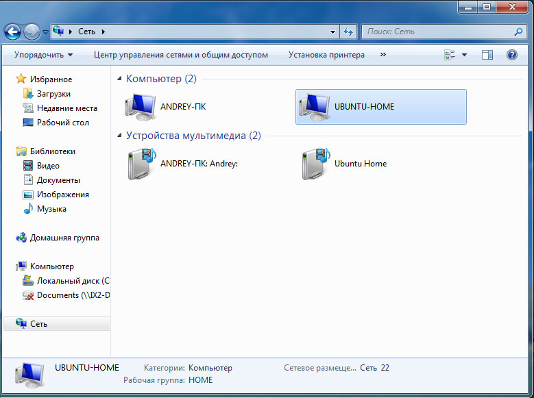 Теперь в сетевом окружении мы можем увидеть значок медиасервера.