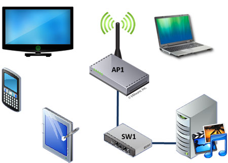 Что касается совмещения функции медиасервера и беспроводной точки доступа в одном устройстве, то мы не видим в этом смысла. При организации домашней Wi-Fi сети основной задачей является максимально возможная зона покрытия без увеличения мощности сигнала, поэтому точку доступа следует располагать где-то в середине квартиры или дома, в то время как медиасервер и сетевое оборудование лучше расположить там, где они никому не будут мешать и к ним будет затруднен несанкционированный доступ.