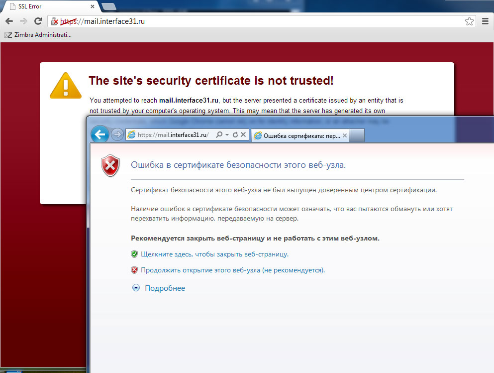 При работе с сервером корпоративных коммуникаций Zimbra часто возникает проблема с самоподписанным сертификатом, почтовые клиенты и браузеры каждый раз выдают сообщение об ошибке проверки сертификата и угрозе безопасности. Как минимум это неудобно, да и не стоит приучать пользователей игнорировать непроверенные сертификаты. К счастью, данная проблема решается очень просто, о чем мы расскажем в этой статье.