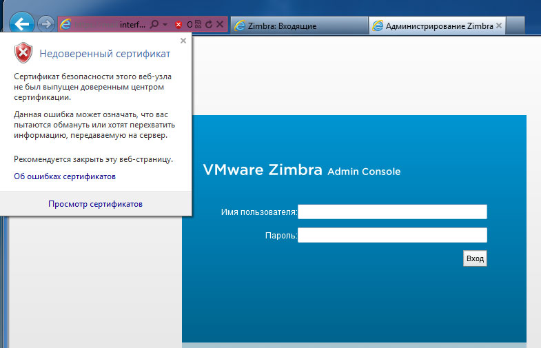 Экспорт и установка сертификата Zimbra