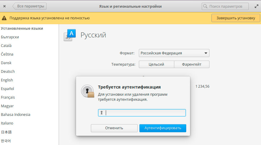 Для разрешения проблем с локализацией нужно было "додуматься" заглянуть в Язык и региональные настройки параметров системы. Где нам "радостно" сообщили, что поддержка языка установлена не полностью, но это легко исправить, Ubuntu умела показывать подобные сообщения прямо на рабочем столе еще очень много лет назад. Неужели трудно было сделать хотя бы оповещение? Ведь локализация - это очень чувствительный для большинства пользователей вопрос.