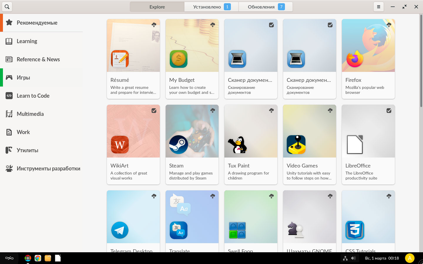 Установка прикладного софта осуществляется из магазина, на первый взгляд он мало чем отличается от аналогичного в современных дистрибутивах, но это только внешнее сходство: