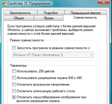 Что касается приложений, которые умеют масштабироваться, но не имеют DPI-Aware флага, то DPI виртуализацию для них можно отключить, для этого на закладке Совместимость следует установить галочку Отключить масштабирование изображения при высоком разрешении экрана.